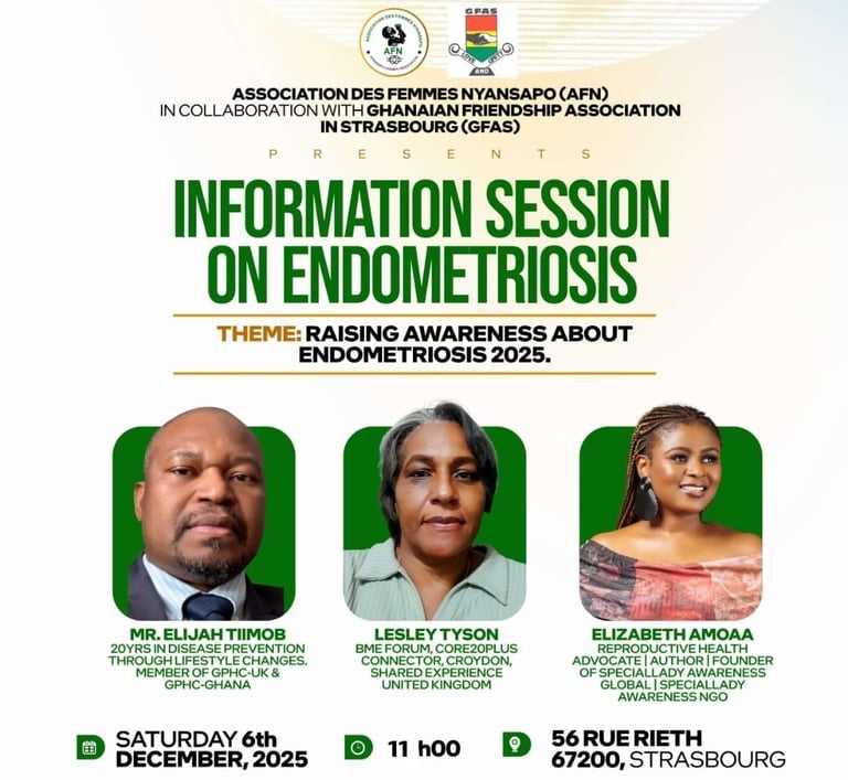 Notre Partenariat l'association des femmes de Nyansapo (AFN) continue de sensibiliser femmes à "l'endométriose", en France et en Europe.